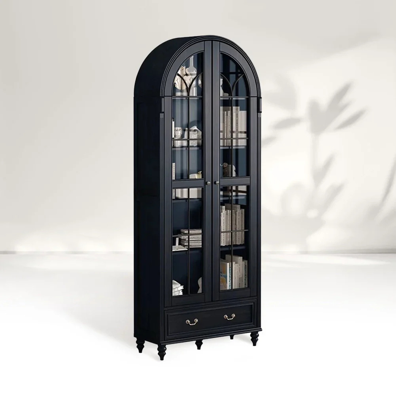 Арочный дизайн книжного шкафа черпает вдохновение из классической архитектуры, добавляя оттенки величия в его профиль. Этот изогнутый силуэт смягчает общий вид, что делает его подходящим для пространств, где изысканность является ключевой.