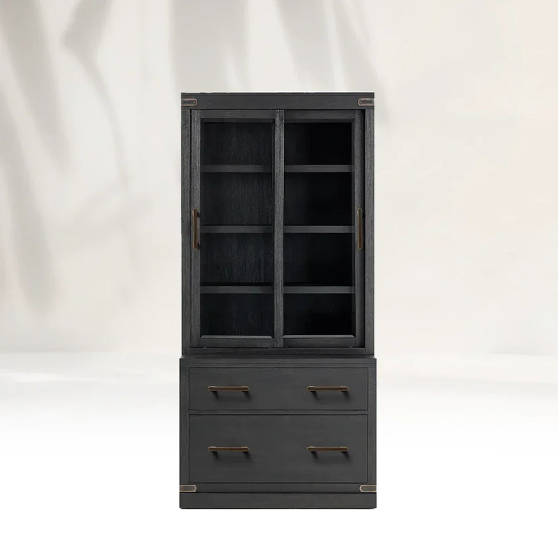 Этот шкаф сочетает в себе дисплей и хранение. Верхний стекло - литературный раздел отлично подходит для демонстрации таких предметов, как книги, украшения или посуду, сохраняя при этом пыль. Нижние ящики предлагают скрытое хранилище для мелких предметов, документов или личных вещей, чтобы сохранить свое пространство.