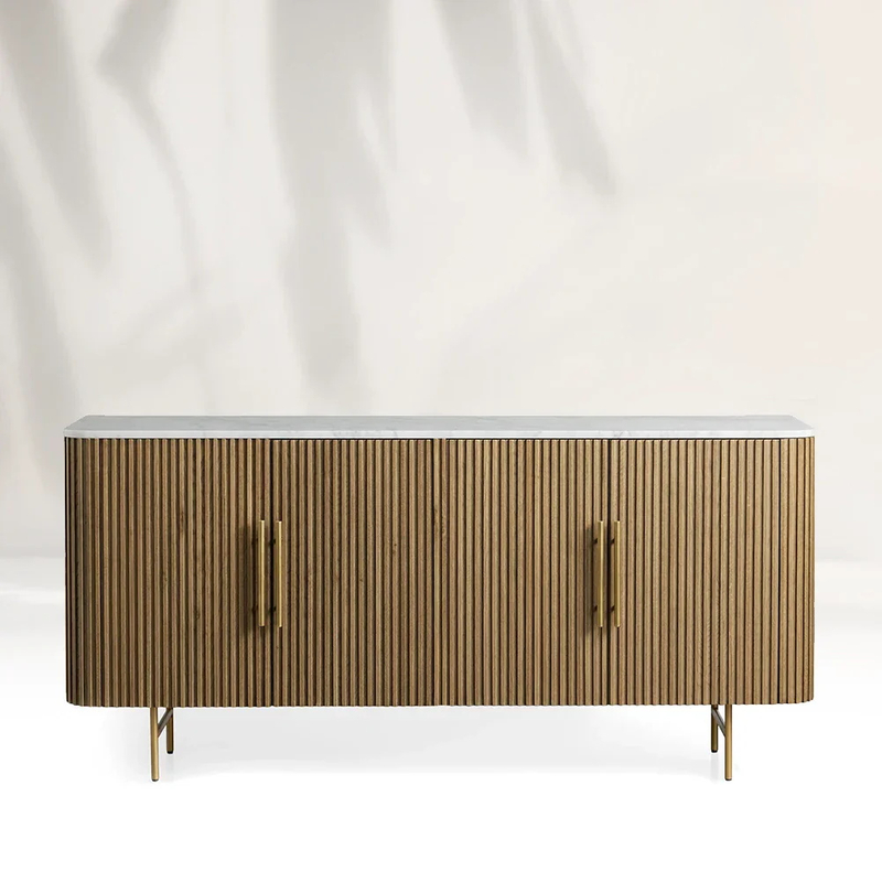 Этот шкаф для телевизора из белого дуба имеет лучшие из роскошного натурального мрамора. Мрамор, с его уникальными схемами овощений, которые напоминают тонкие потоки, блуждающие по ландшафту, добавляет элегантность и изысканность. Каждая плита - одна - a - a -kind, гарантируя, что ваш телевизионный шкаф действительно отличительен. Прохладное, гладкое прикосновение мрамора прекрасно контрастирует с теплой, зернистой текстурой основания белого дуба, создавая гармоничную смесь материалов. Натуральная мраморная вершина не только служит потрясающей центром, но также предлагает отличную теплостойкость, что делает его идеальным для установки медиа -устройств. Это комбинация, которая сочетает в себе функциональность с высокой эстетикой, улучшая общее очарование вашей гостиной.